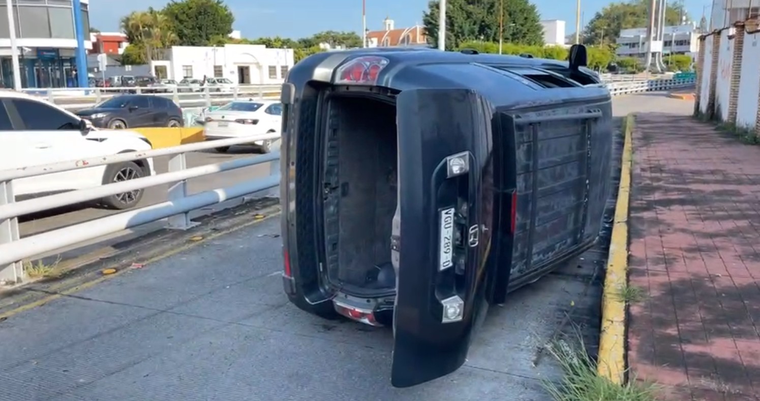¡Se le cruzan y termina volcada!