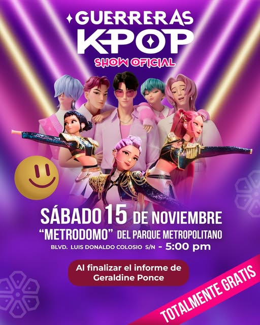 TOTALMENTE GRATIS, EL SHOW DE LAS GUERRERAS K POP se presentará este sábado en el Metrodomo del parque metropolitano, al finalizar el encuentro ciudadano de la presidenta Geraldine Ponce.