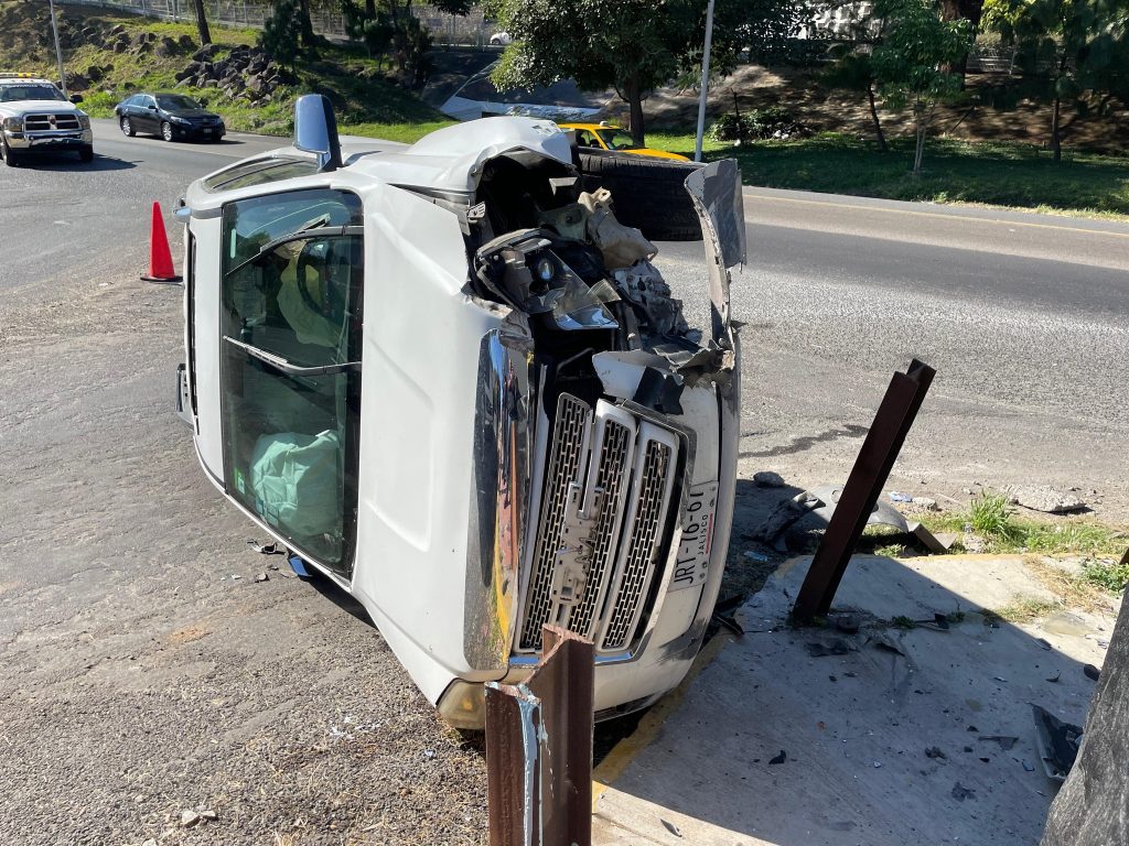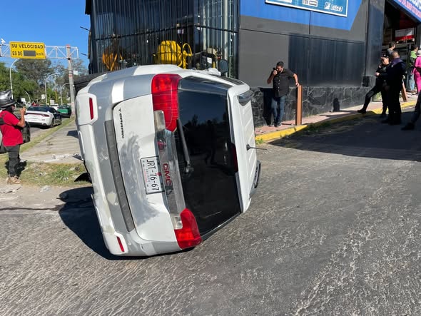 Se conoció que una camioneta marca GMC, tipo Terrain, color blanco, circulaba por el libramiento carretero en sentido de oriente a poniente y al llegar a la calle Carrillo Puerto intenta ingresar, pero debido al exceso de velocidad con el que conducía una femenina, termina derrapando al no poder a frenar, e impacta unos rieles colocados en la banqueta y termina volcada de su lado derecho, resultando su conductora con golpes simples.
